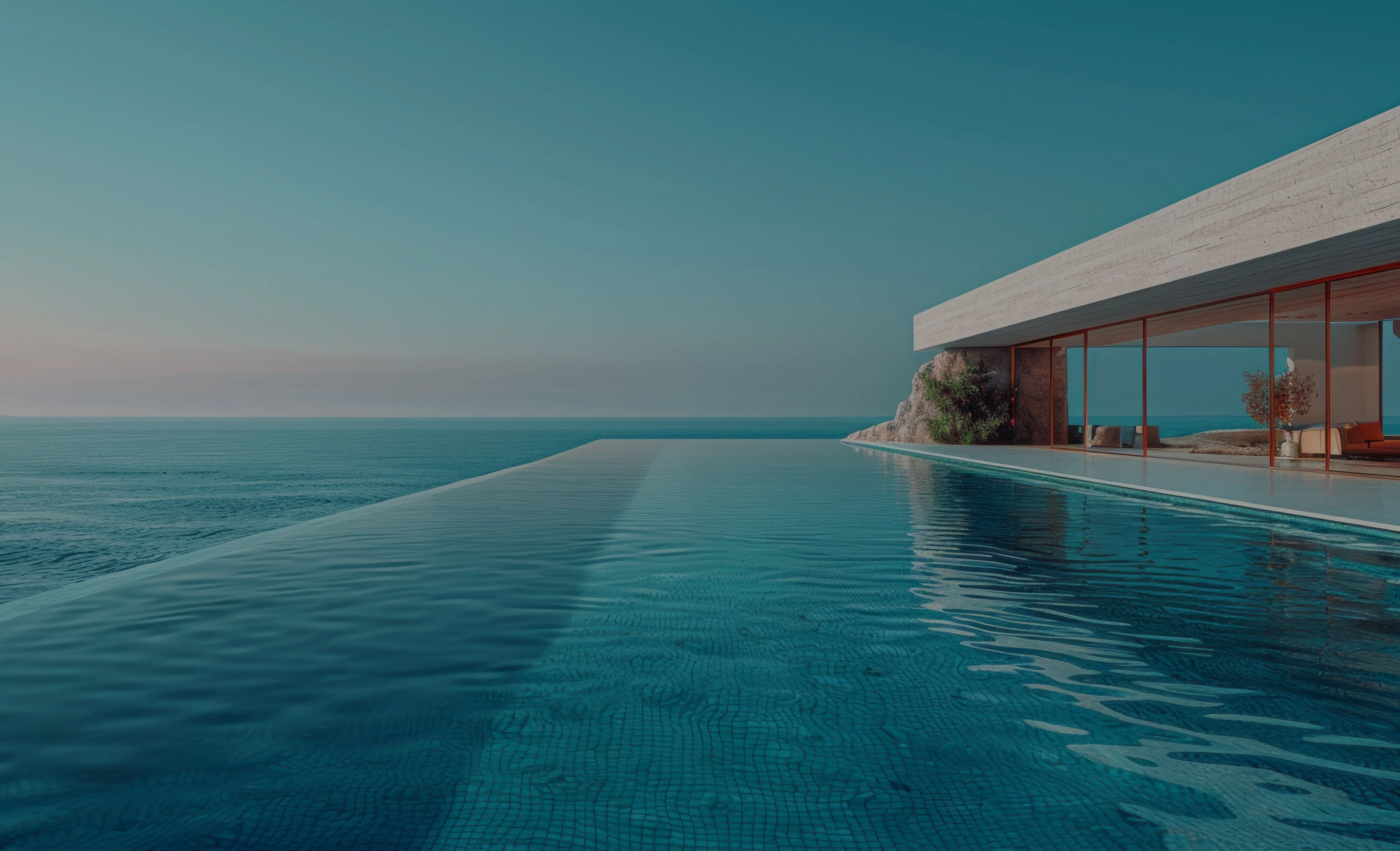 Our infinity pools are perfectly engineered, ensuring water flowing over the negative edge pool creates the desired infinity effect. Carefully designed one or more edges guarantee a smooth water level, enhancing the pool area with a continuous flow that blends seamlessly with the surrounding landscape.